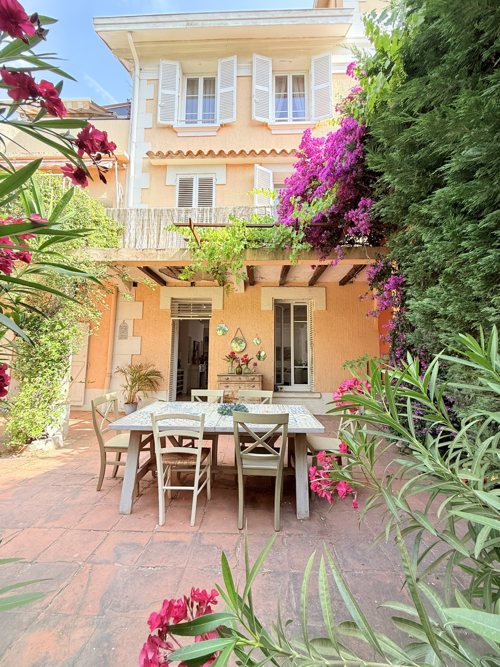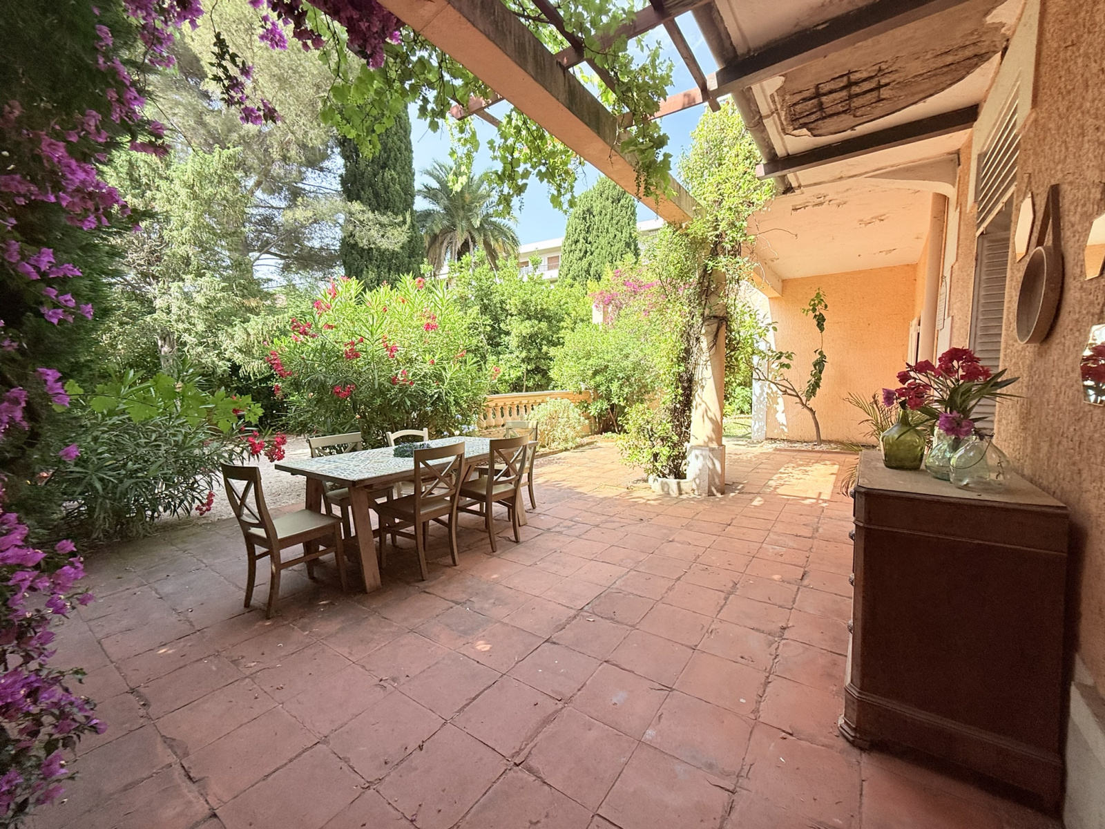 Un jardin cloturé totalisant 400m² avec une terrasse de 60m² exposée Sud.