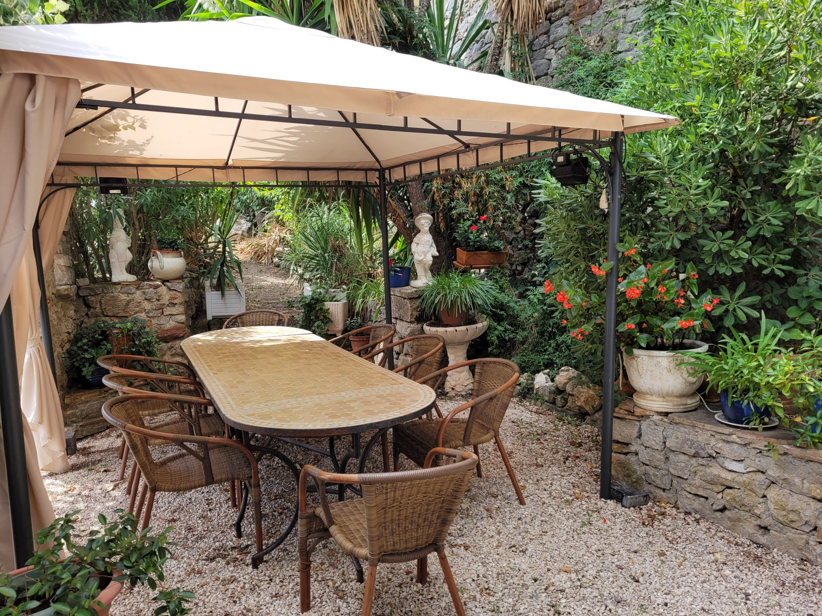 Maison sans vis-à-vis, équipée en double vitrage et volets intégraux, 2 cheminées, climatisation réversible, de nombreuses terrasses sur le terrain ainsi qu'une salle de jeu de 23 m².