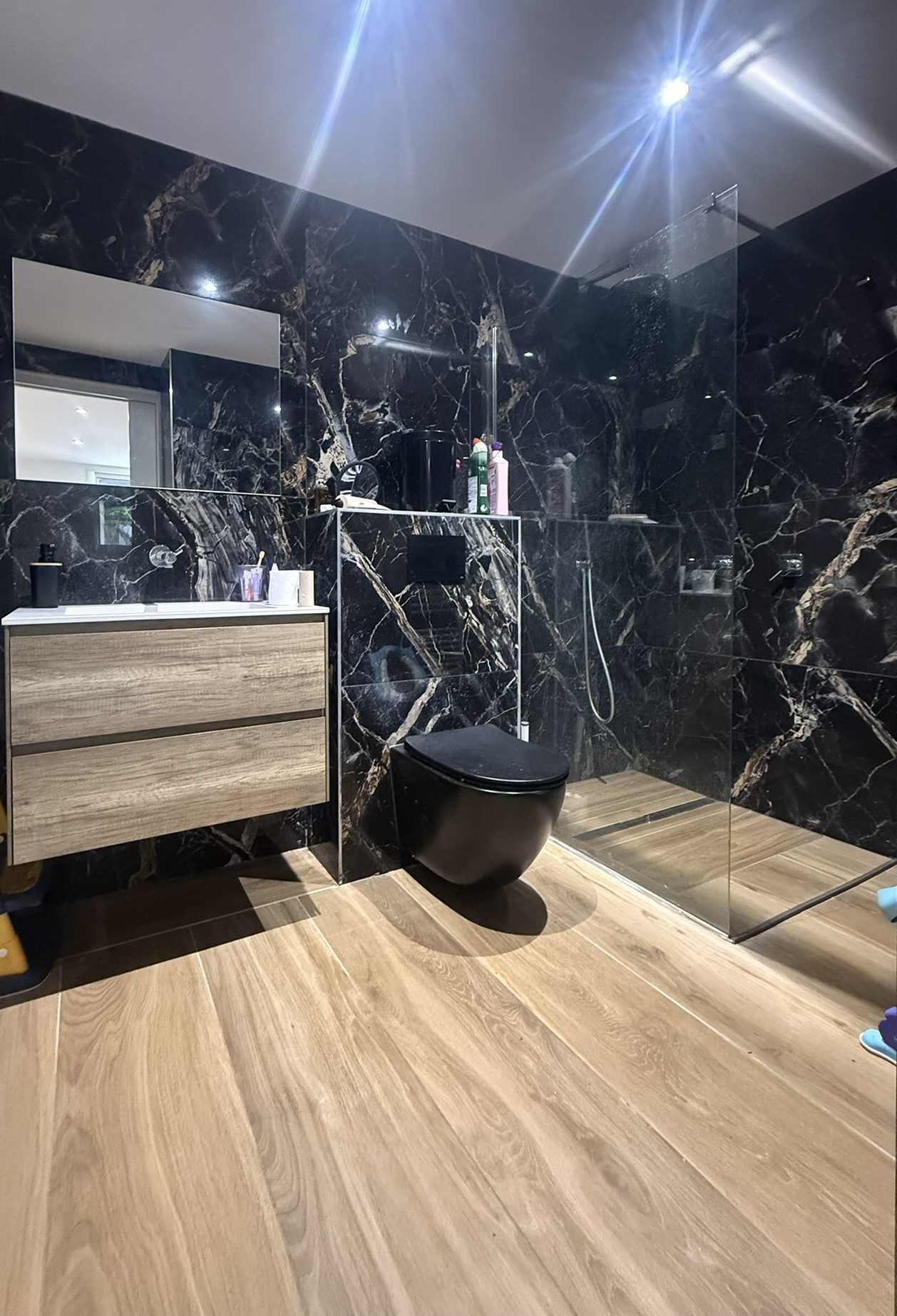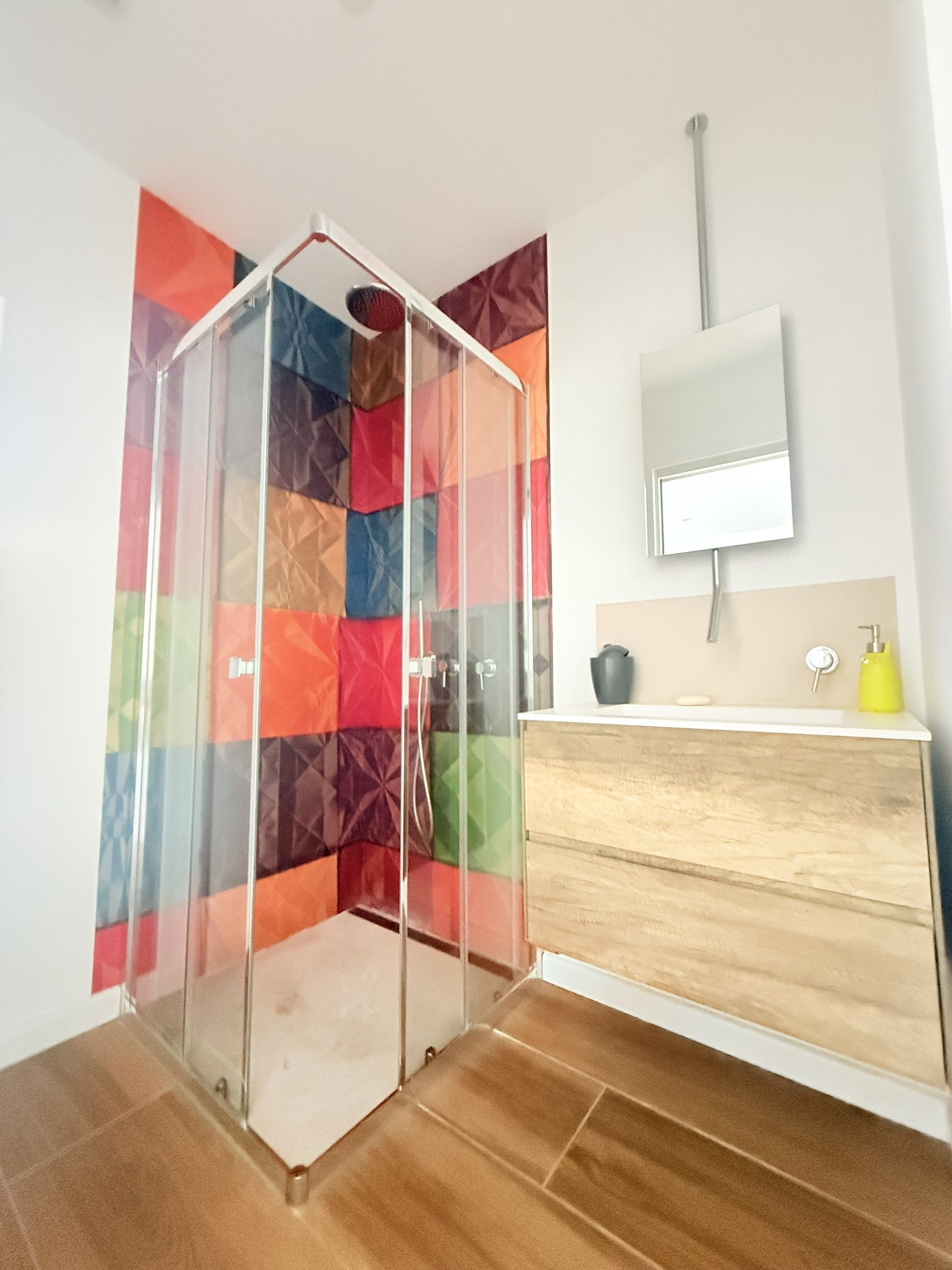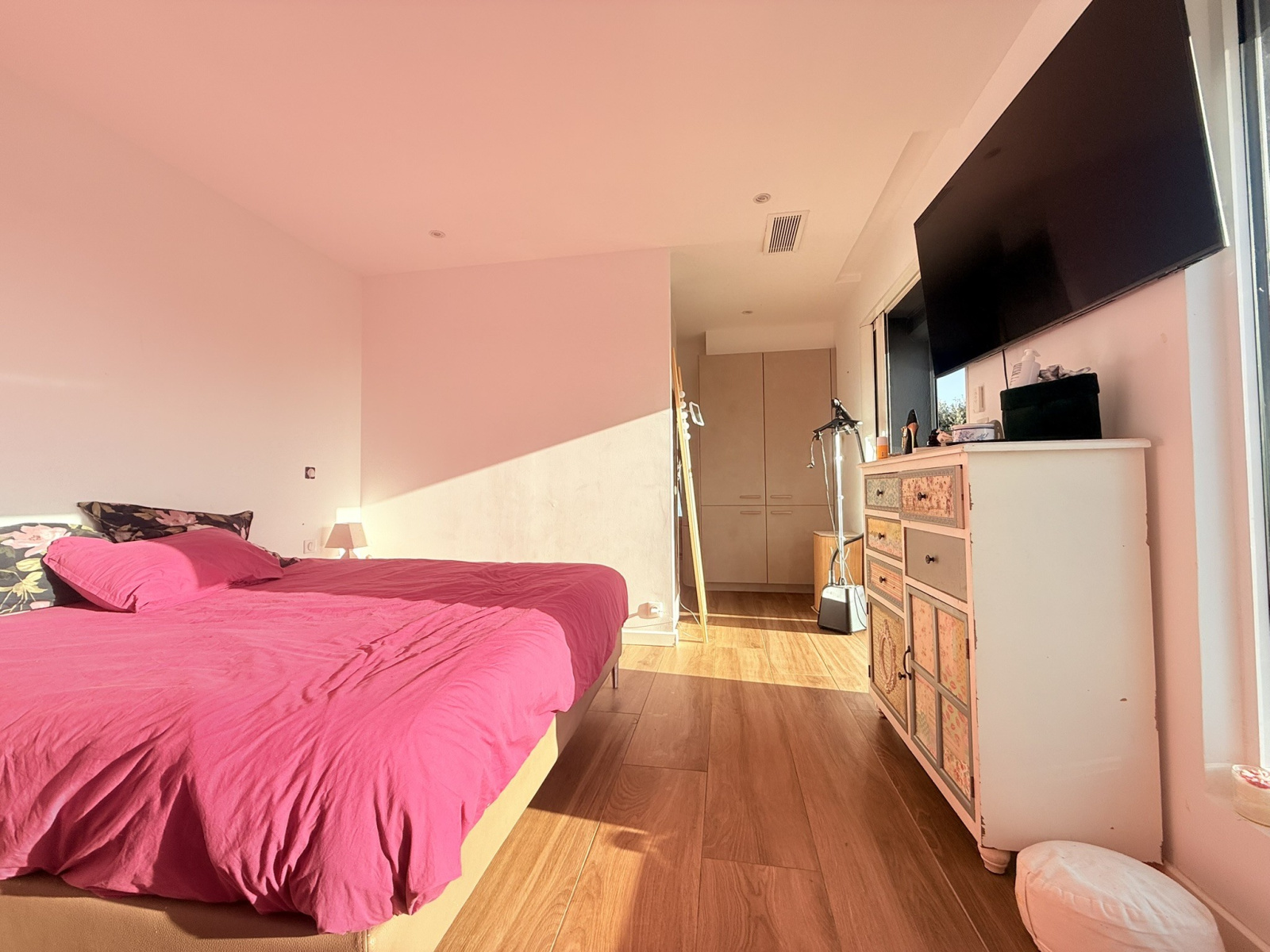 Au rez-de-chaussée : vous trouverez trois chambres aux volumes confortables, chacune dotée de sa propore salle d'eau ou salle de bain, ainsi que d'un espace de rangement aménagé. Toutes offrent un accès direct au jardin ou à la vaste terrasse.