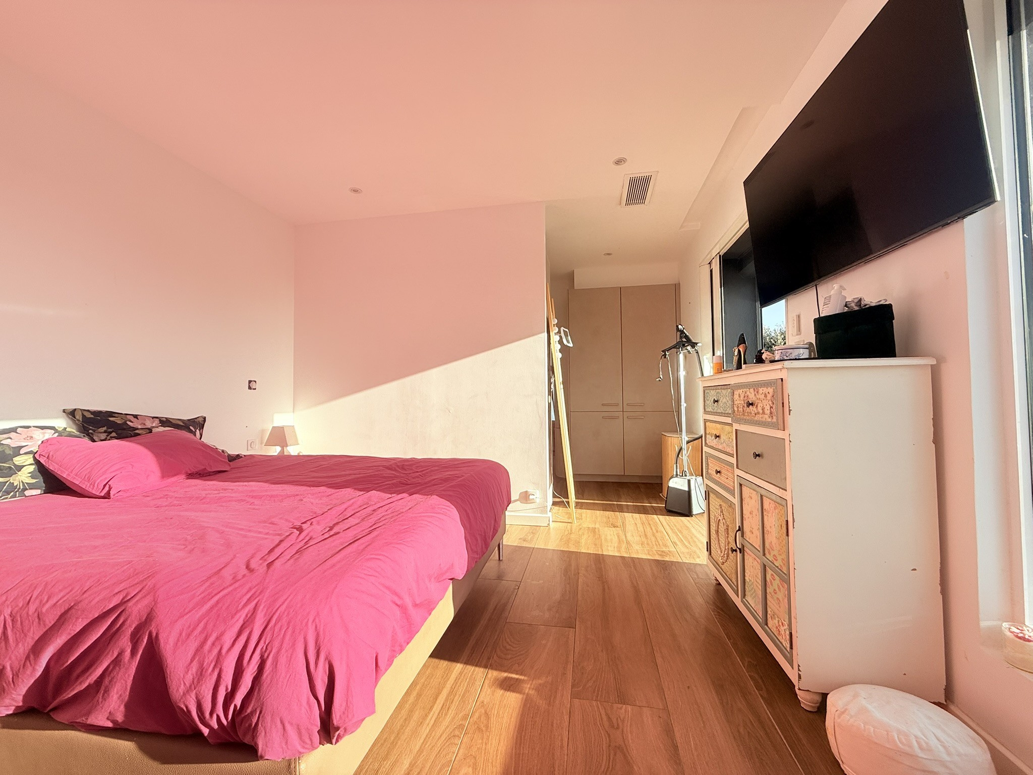 Au rez-de-jardin, un bel espace cuisine ouvert sur une pièce de vie avec vue sur la piscine. Une quatrième chambre, également équipée de sa salle d'eau et son dressing complète ce niveau.